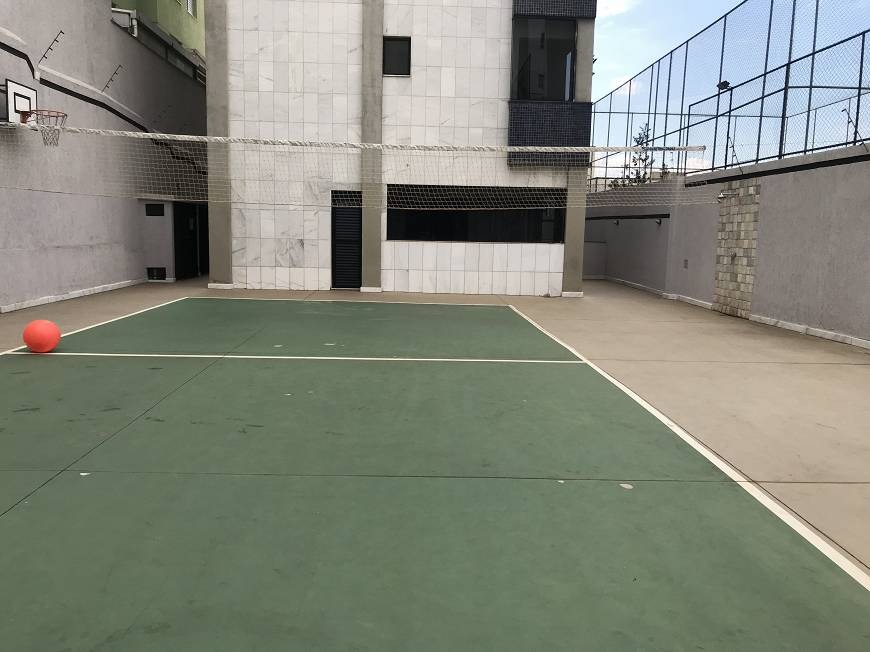 O condomínio com com zelador de 08h as 17h, elevador com chave para cada andar, quadra poliesportiva, espaço gourmet com churrasqueira, salão de festa e sauna.