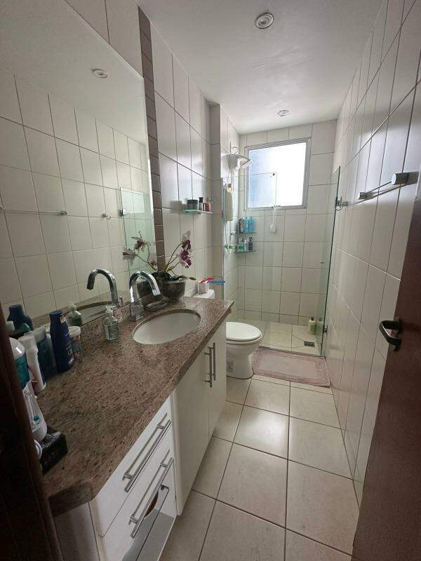 03 BANHOS PISO EM PORCELANATO, BANCADAS EM GRANITO, BOX EM VIDRO TEMPERADO;