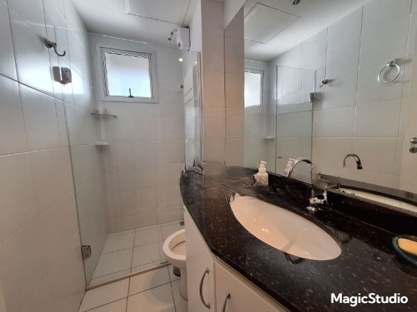 Banheiro social com box em blindex e armário